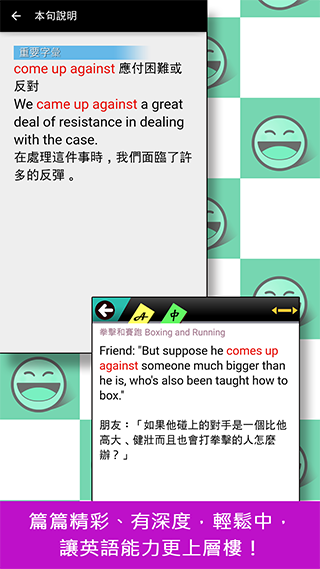 看了這些笑話,不但能提高你的閱讀能力,在捧腹大笑,會心一笑之外,更能讓你在愉快的氣氛中親近英文,藉此瞭解多元的西方文化和生活方式,輕鬆學道地的英語。如果您好不容易開始下定決心學習英文,但看到呆板的教材卻又想打瞌睡,那你一定不能錯過!