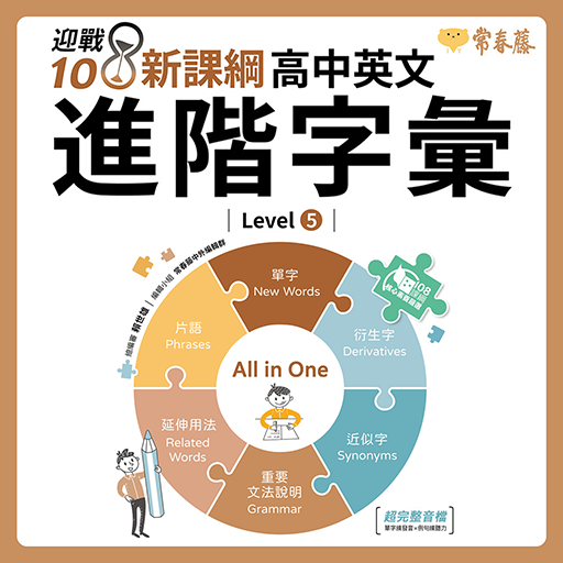 《高中英文核心字彙》Levels 3 & Levels 4 內容特色: 因應 108 課綱「高中英文參考詞彙表」編修,賴世雄教授帶領常春藤中、外編輯團隊更新7000單系列套書。依據大學入學考試中心於 109 年 7 月頒布之「高中英文參考詞彙表」修改,並參考單字使用頻率適度排序,另增補學習必備、各類考試重要字詞,完整蒐集新式學測及高中英語聽力測驗的必考單字,單字、衍生字、近似字、重要文法說明、延伸用法、片語 一應俱全!。本內容適用於學測及高中英聽、全民英檢中級、高二程度。